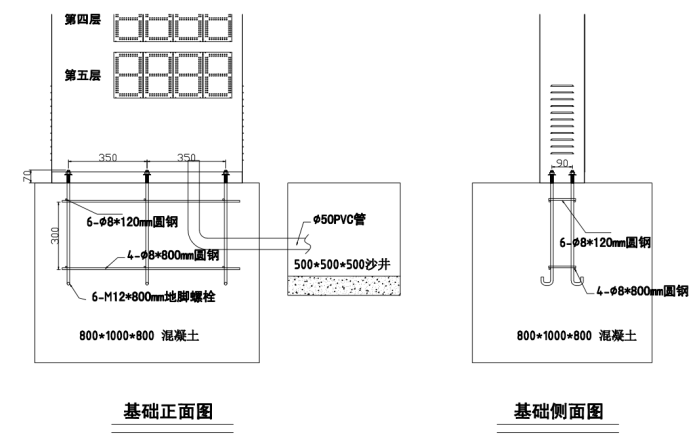 户外引导大屏采用螺钉紧固安装。将Φ8圆钢、地脚螺钉(M12*500)制造地笼,如图4.2所示,然后将地笼及PVC穿线管(Φ50)预埋入800*1000*800mm混凝土,待自然凝固后,再将户外引导大屏固定到地脚螺钉上即可。(本说明仅供参考,施工请按照《建筑地基基础工程施工质量验收规范》GB50202-2002)