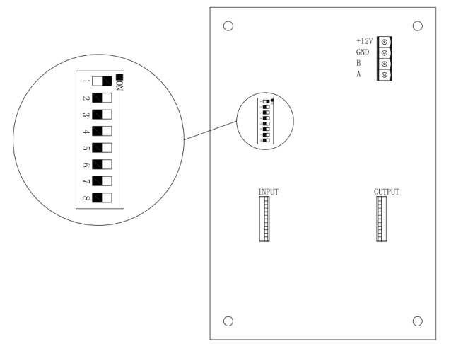图5.1 户外引导大屏电路板示意图如图5.1所示,大屏的圆圈部分是用来拨码地址的