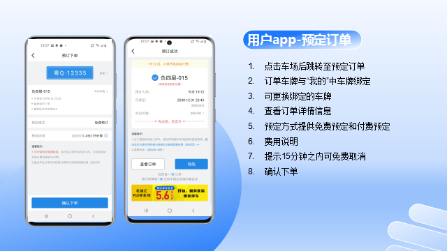 2. 预订管理:车主可以通过应用管理自己的车位预订情况,包括预订时间、预订人等信息。