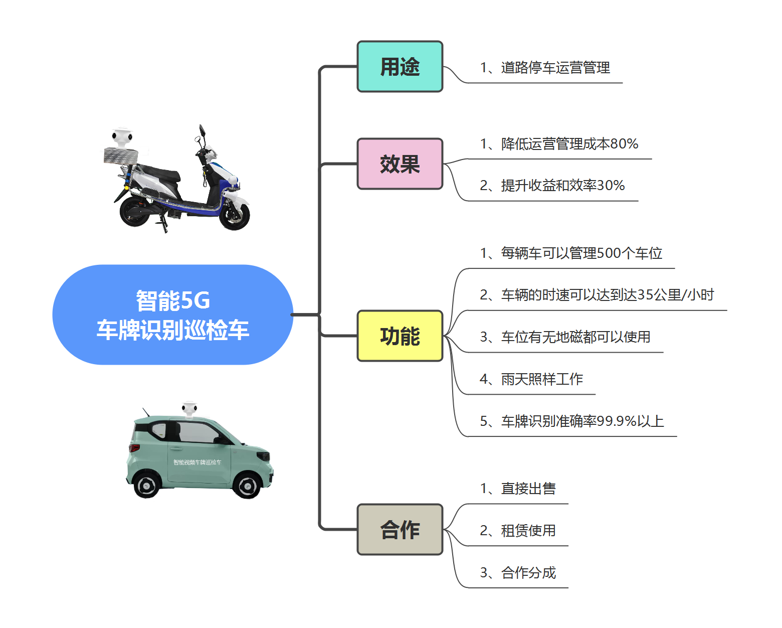 视频巡检车视频巡逻车是面向路内停车收费管理场景设计的前端抓拍识别一体的智能成像设备。通过智能ISP、车辆及泊位属性检测等VIR5.0的深度学习算法的部署获取边缘计算能力,通过视觉的方式实现对泊位车辆的行为的检测和跟踪,以证据图片/视频的方式记录其在泊位中完整的停车过程,提供完整有效的的停车收费证据。